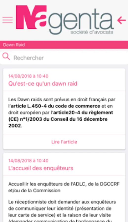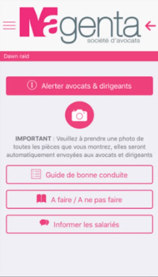Beyond relevant information about Magenta and its news, the Magentapp contains a support tool to support companies facing competitive searches, with the integration of advanced features to interact within the company and with his advice with the greatest reactivity: automated sending of the mandate or the order defining the field of investigations to a predefined mailing-list, automatic email of information of the teams, practical advice to follow during all the operations, etc.