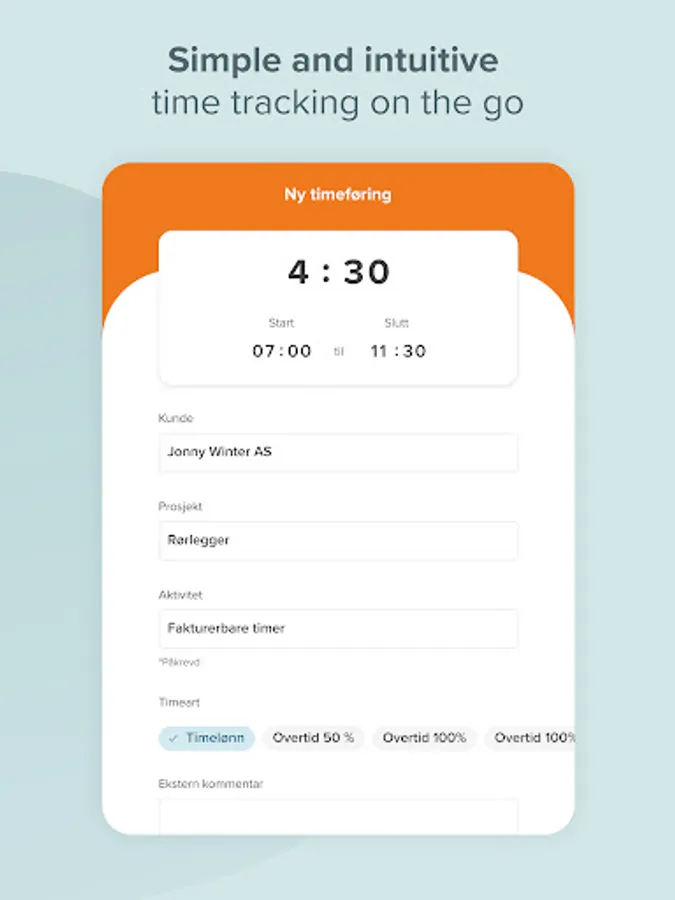 Poweroffice Go timesheet is closely integrated with Poweroffice Go accounting and payroll. This means that billable hours are invoiced easily, hourly and overtime work is included in the salary calculation completely automatically.