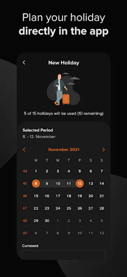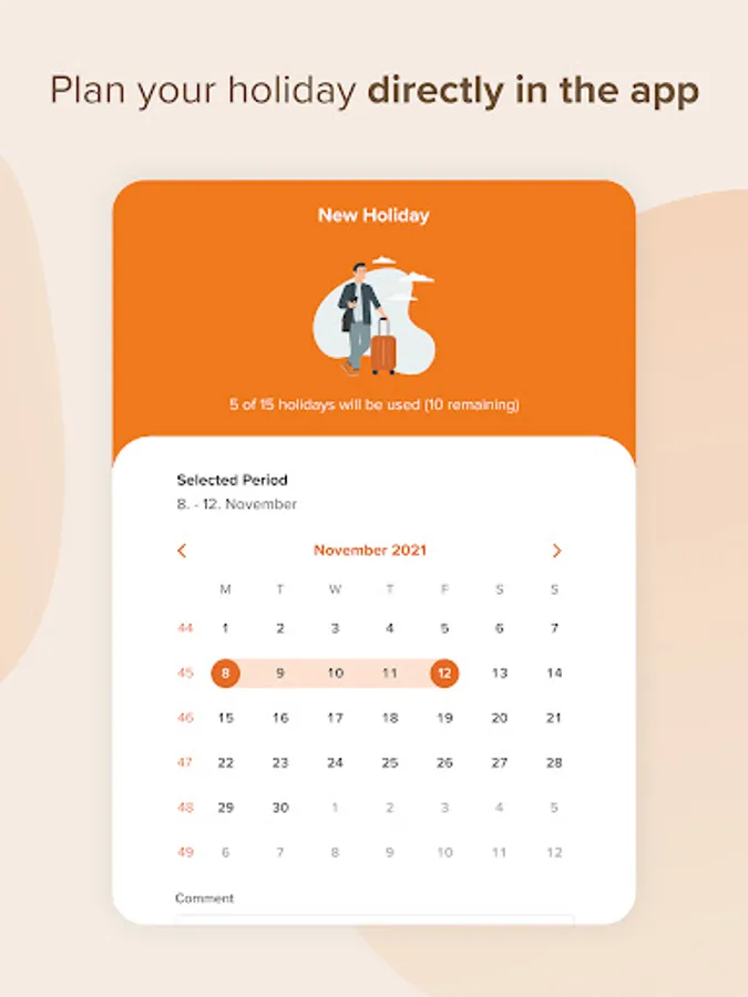 Get a full overview of your holiday and leave. Plan and register your holiday directly in the app.