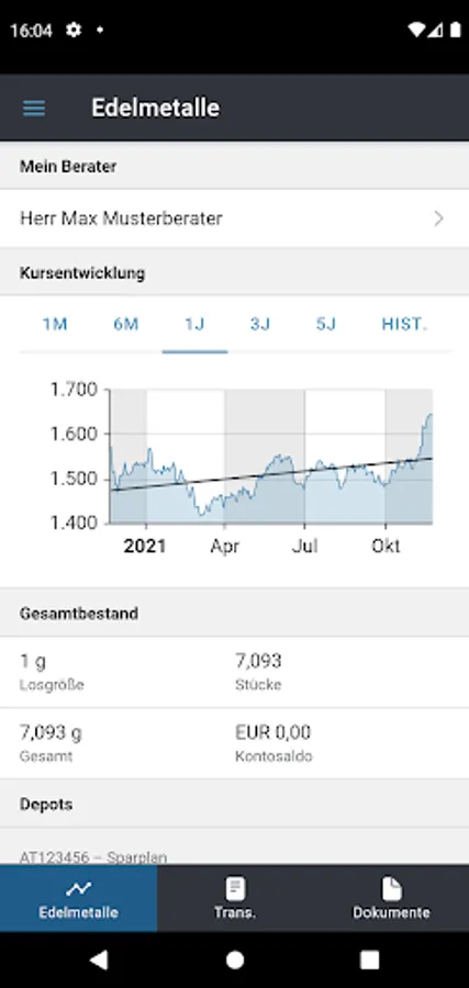 The app gives you mobile access to your securities and precious metal deposits. In addition to the current custody accounts and the ongoing transactions, you will find information and charts on your current asset development.