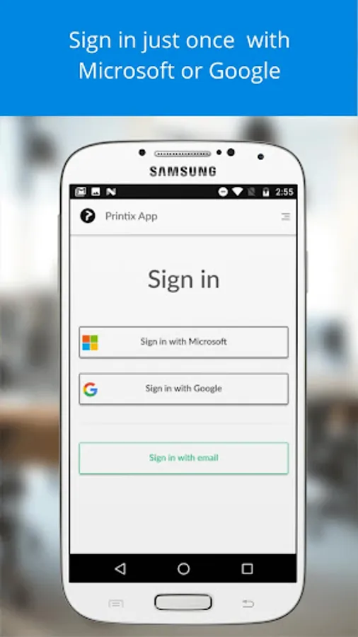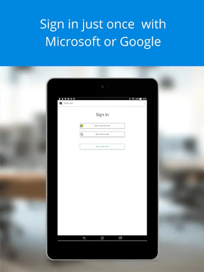 * Sign in once with Microsoft (Azure AD/Office 365), Google Workspace, Okta, OneLogin or your Printix account.