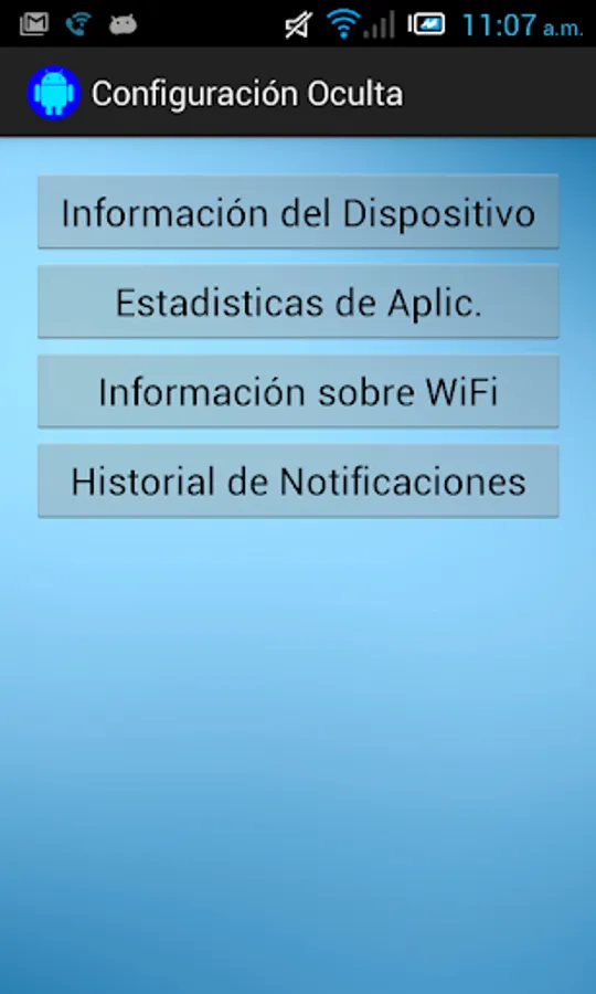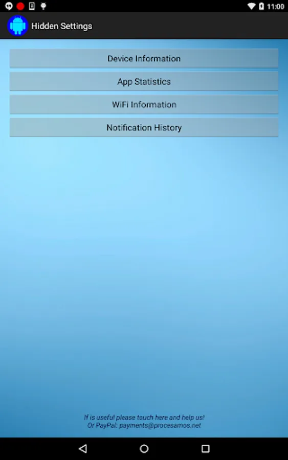 This app allows to access to hidden settings in your Android device WITHOUT ROOT, WITHOUT PERMISSIONS and your size is less than 100KB..