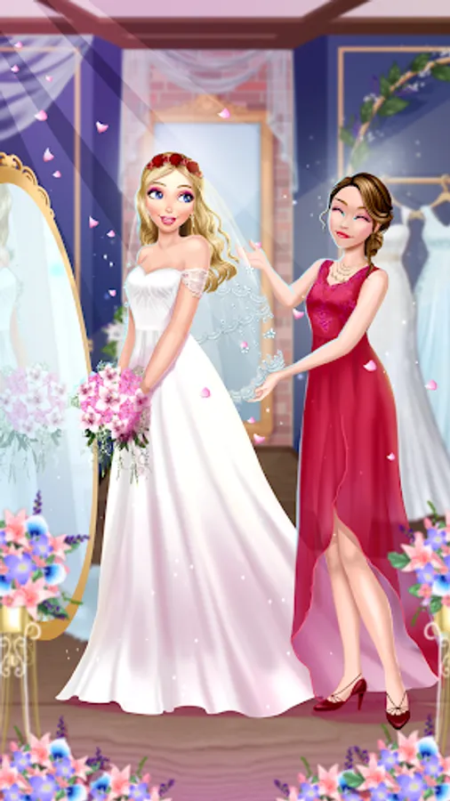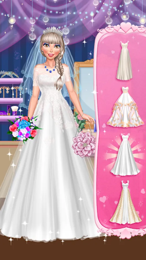 Amazing wedding dresses are waiting for you in the dress up level. Complete Blondie's wedding look with jewelry and an elegant purse. A flower bouquet is a must have for a bride. Don't forget about the veil, it's just as important!