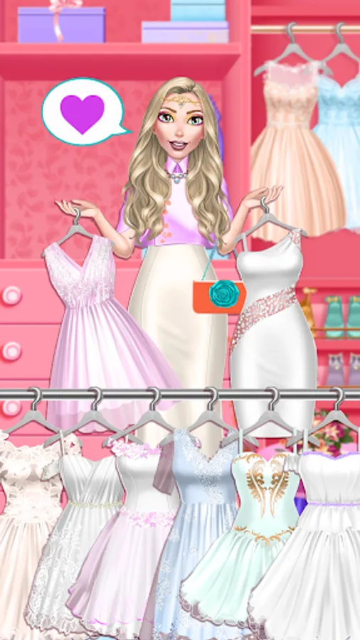 What's a wedding without a bridesmaid? You can play dress up with her too! Choose an elegant outfit from her wardrobe full of colorful dresses, skirts, blouses and many more. Take photos and keep all the memories in an album!