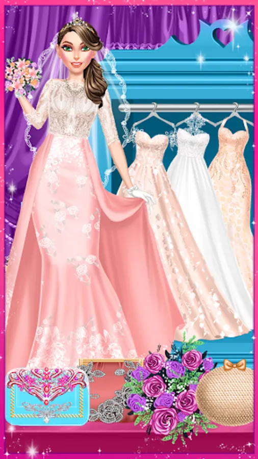 Our lovely girl is getting married! She has dreamed about her wedding day since she was a little girl and now the moment has finally come. Enter one of the most elegant wedding games and help the bride and bridesmaids prepare for this special event.