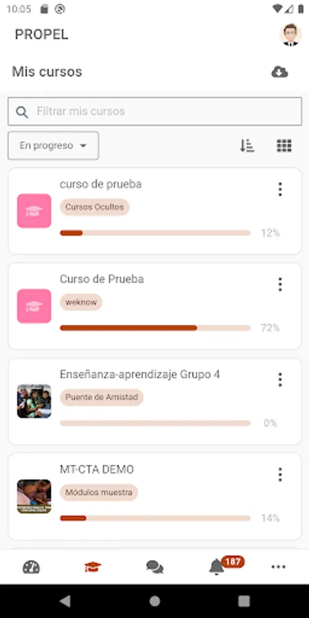 Continue your training at all times! Access all the content of your PROPEL platform. Check the content of your courses, activities, grades, participants, calendar, among others.