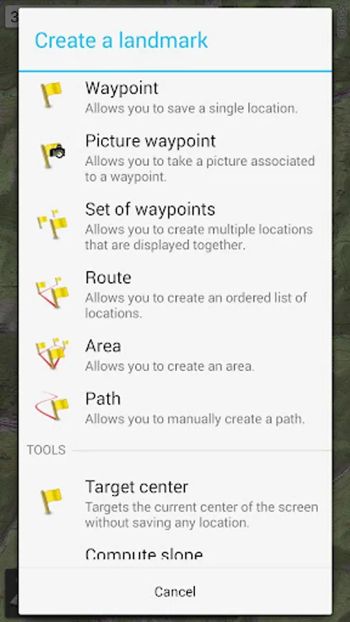 You can add various items on the map such as waypoints, icons, routes, areas and tracks.