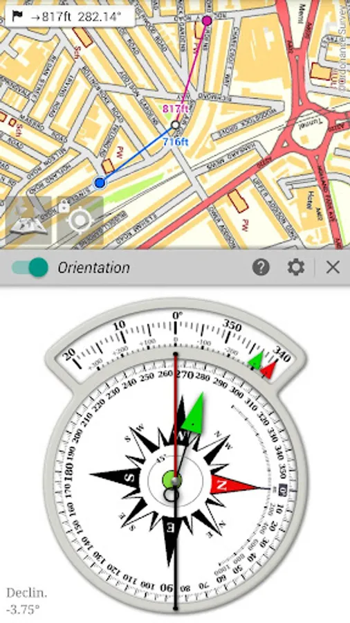 Your real location and direction are clearly displayed on the map, which can be rotated to match your real orientation (depends on device capabilities).