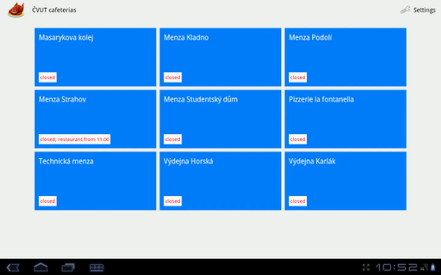 ČVUT cafeterias let you browse cafeteria's menu and by using users voting you will be always aware about food popularity. Be alerted about meal's availability before you came in to the caffeteria. Do you have a favourite cafeteria already? Just pin shortcut to your homescreen. Or are you visiting many of them simultaneously? Just browse all of them using this app!