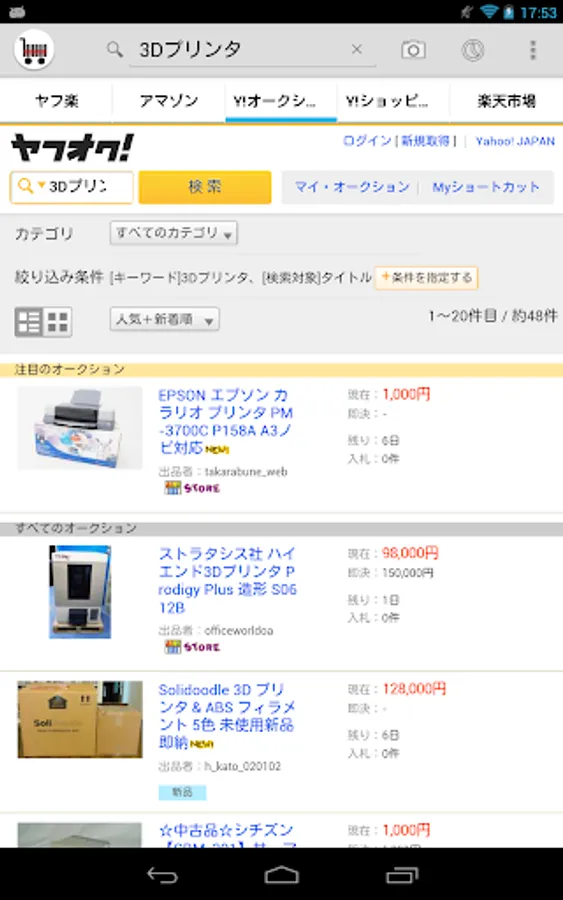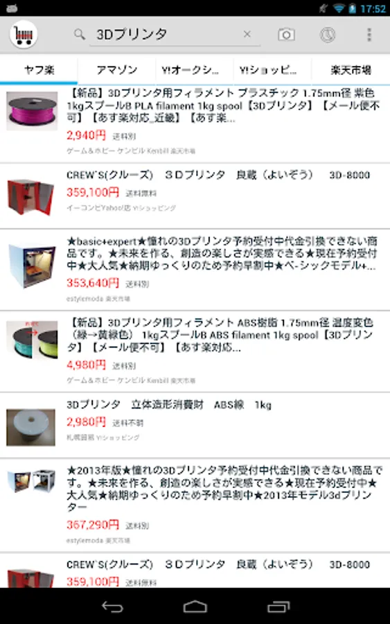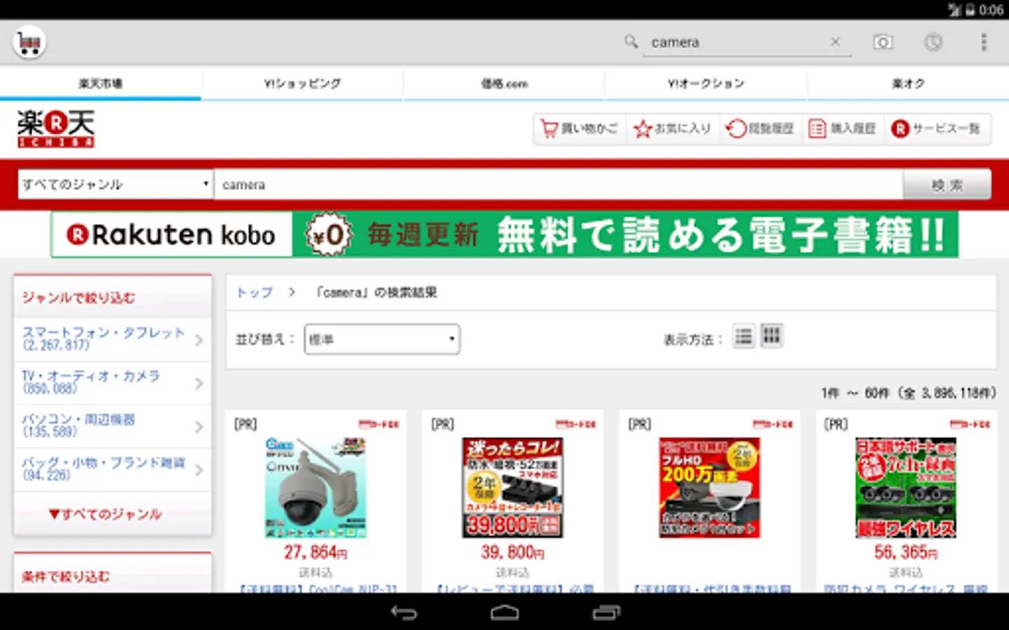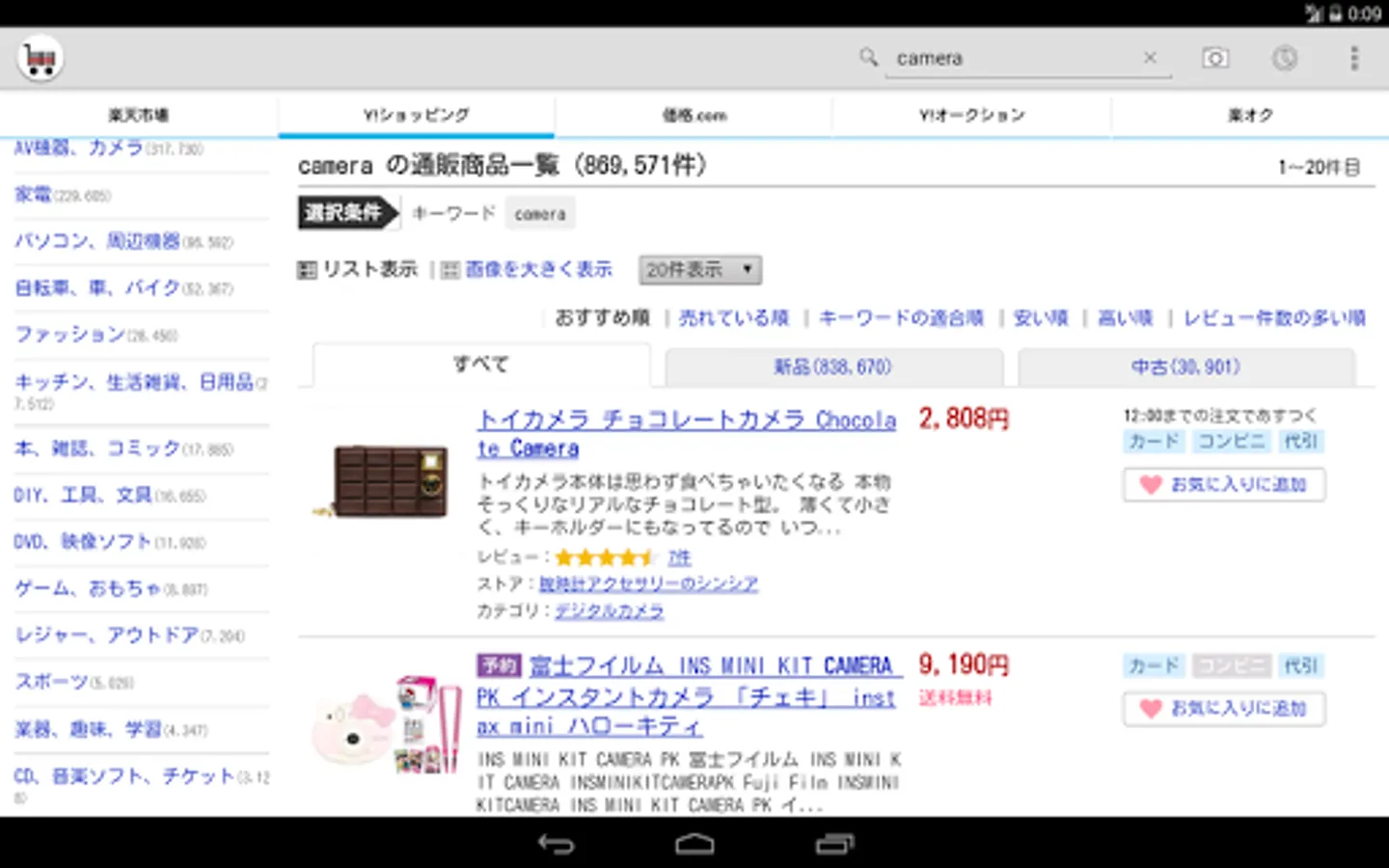 「価格検索」は、タブ切替で、楽天市場、ヤフオク、Yahoo!ショッピング、Googleショッピング、ヨドバシ.com、セブンネットショッピングなどを横断検索するショッピングアプリです。公式サイトを表示するので、信頼性は抜群。価格比較ができるだけでなく、レビューや商品の紹介を読み比べることも簡単にできます。