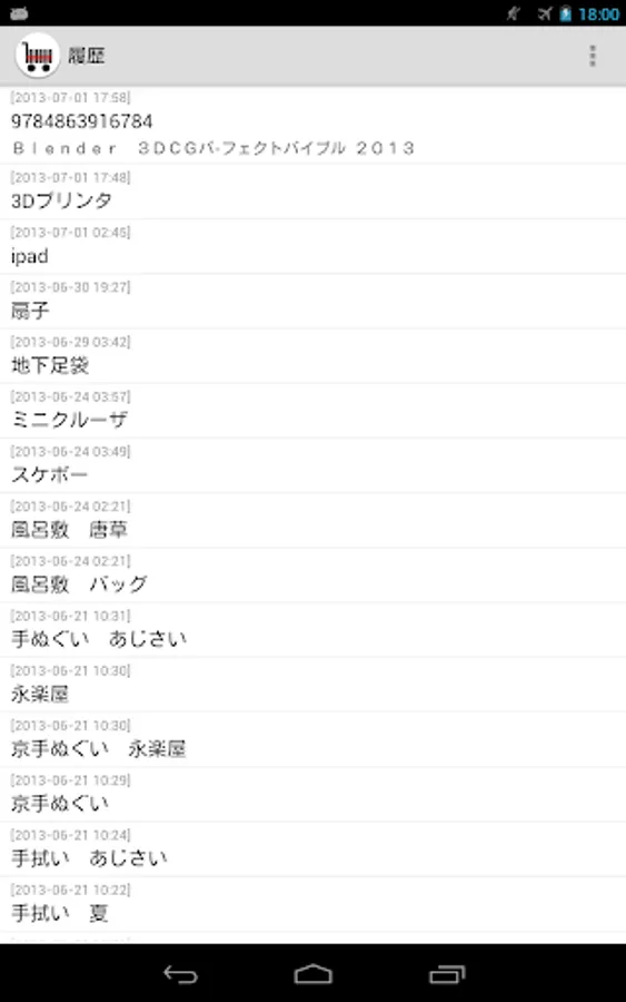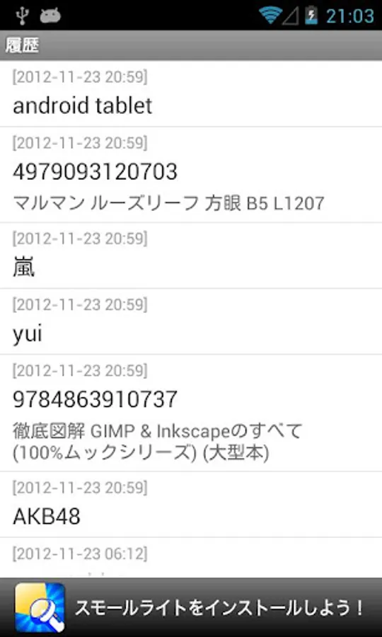 店頭でちょっと気になる商品を見つけたときに、メモ代わりにバーコードリーダーでスキャンしてみるというのもいいアイデアです。読み取ったバーコードは検索履歴に保存されるので、後でゆっくりレビューを読んだり、商品の詳細情報や最安値を調べることができます。