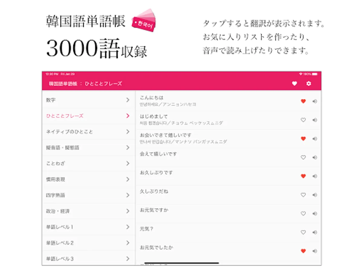 The definitive Korean wordbook app! This app is useful for everyone who is learning Korean, from beginners to advanced Koreans. This is a must-see for those who are challenged with the Korean Proficiency Test and Korean Language Proficiency Test!