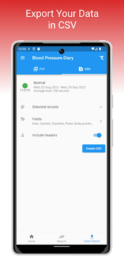 Keep on top of your data by viewing reports and share your data with your healthcare provider in CSV and PDF formats.