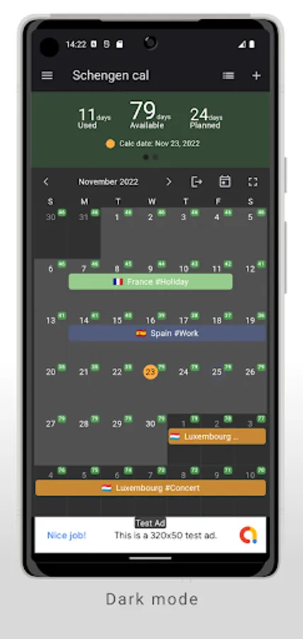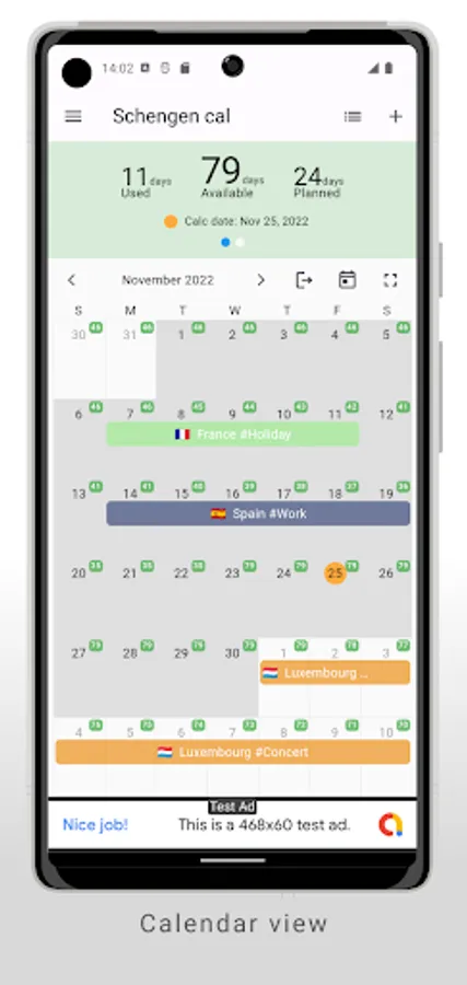 Schengen calculator for tracking visa-free entry using the (90/180) rule.