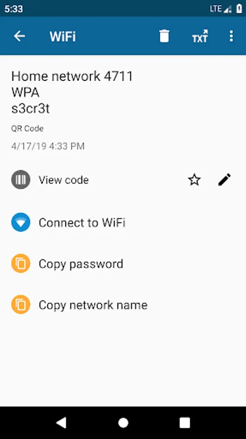 Scan all kinds of QR codes and barcodes with the QRbot QR code reader. Quickly access functions relevant to your scans: For example, add contact data to your address book or connect to a WiFi hotspot with a single click. Easily share arbitrary data such as website links by displaying them on your screen as a QR code and scanning them with another device.