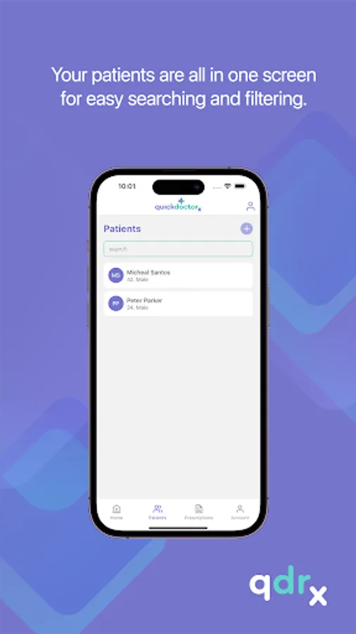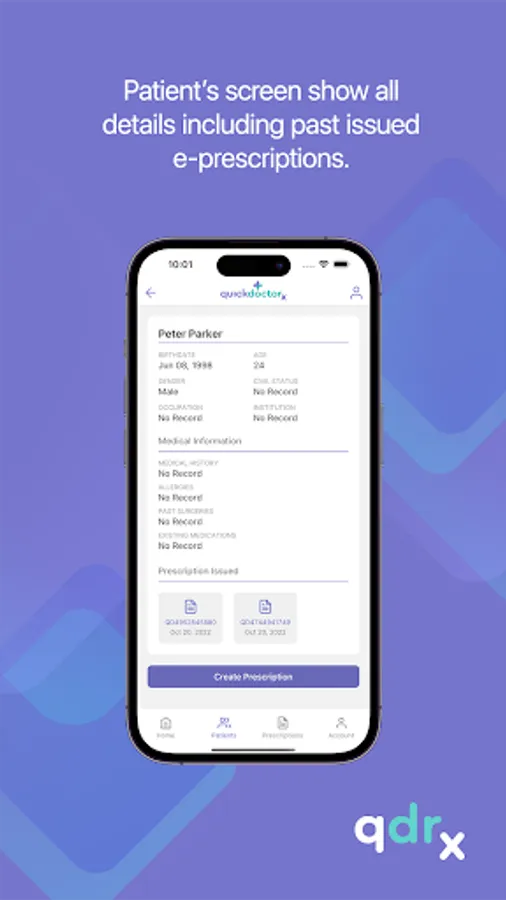 The patient's module keeps all records in one place. You can view patient's information in just one tap and all your past issued prescriptions are all in one place for easy reference. You can also add patient information in just seconds.