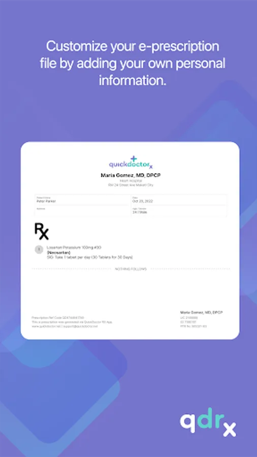 Generate electronic prescriptions with ease. You can save it or immediately share it to your patients. With this mobile app you can keep records of your own patients and re-visit them when they come back for follow-ups. Easily look-up past issued prescriptions in just one glance.