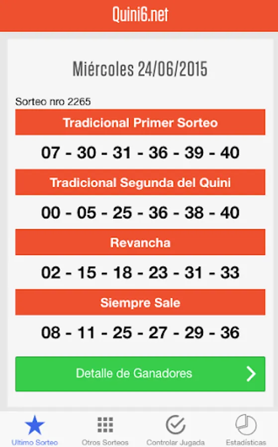 All the results of the Quini6 played in Argentina, updated after each draw.