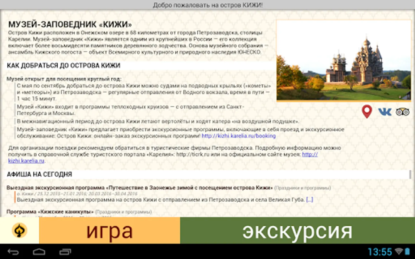 Official application from the Museum "Kizhi» (http://kizhi.karelia.ru/).