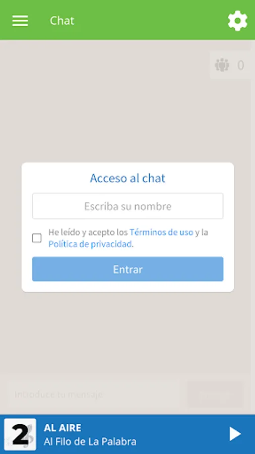 Entrar en la sala de conversación de la radio