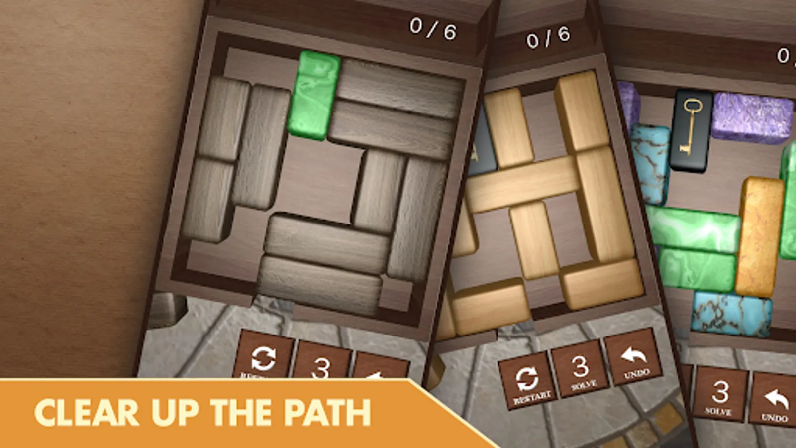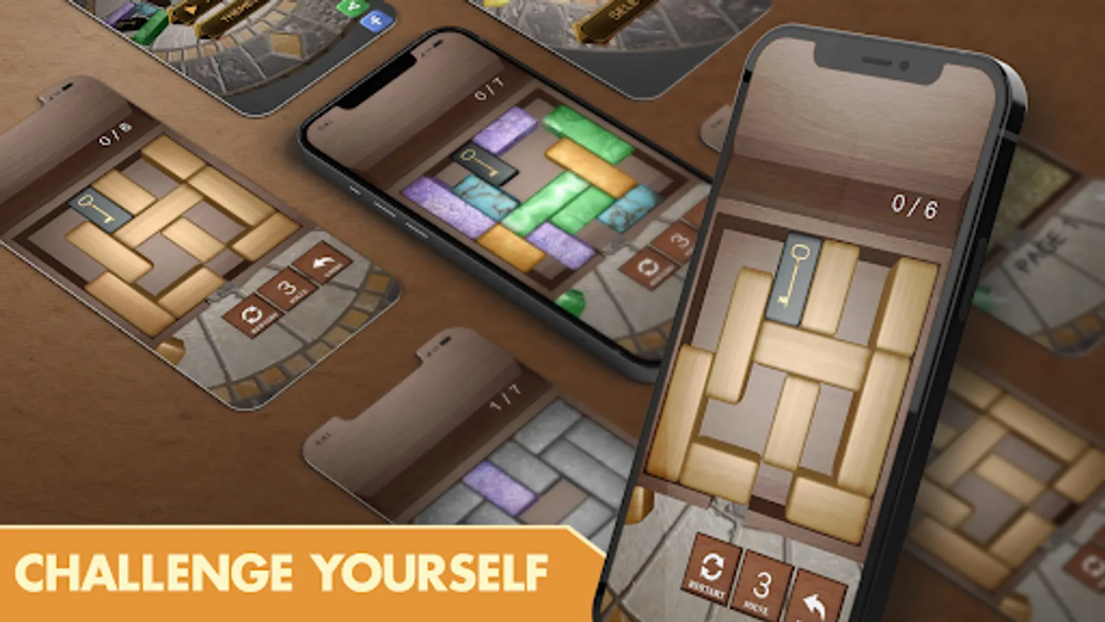 ◆ Realistic 3D graphics. Play the game on a wooden table with wooden and marble blocks