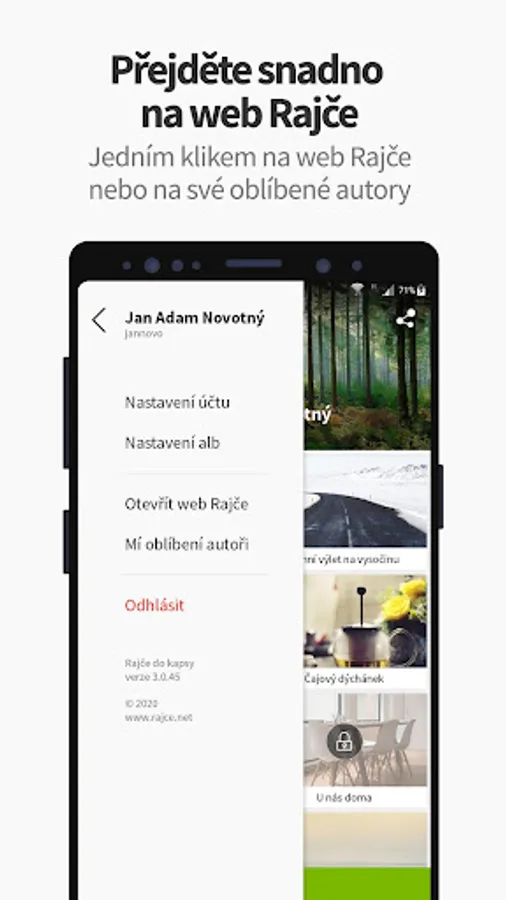 Rajče do kapsy is the mobile application of the Rajče portal, which is the largest of its kind in the Czech Republic and contains more than 1 billion photos and half a million videos by more than 700,000 people. Every day there are several thousand contributions from various authors.