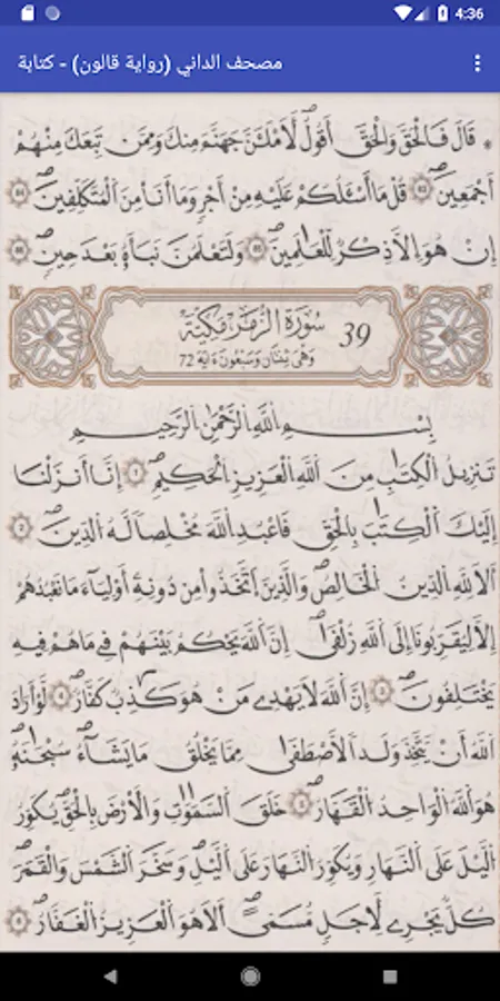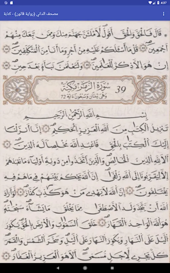 Application to browse the Quran (Light version) by telling KALON Nafie painted proximal (formerly the Koran mass). Koran print Libya. The program has a page with writing only. The application works without the need for Internet
