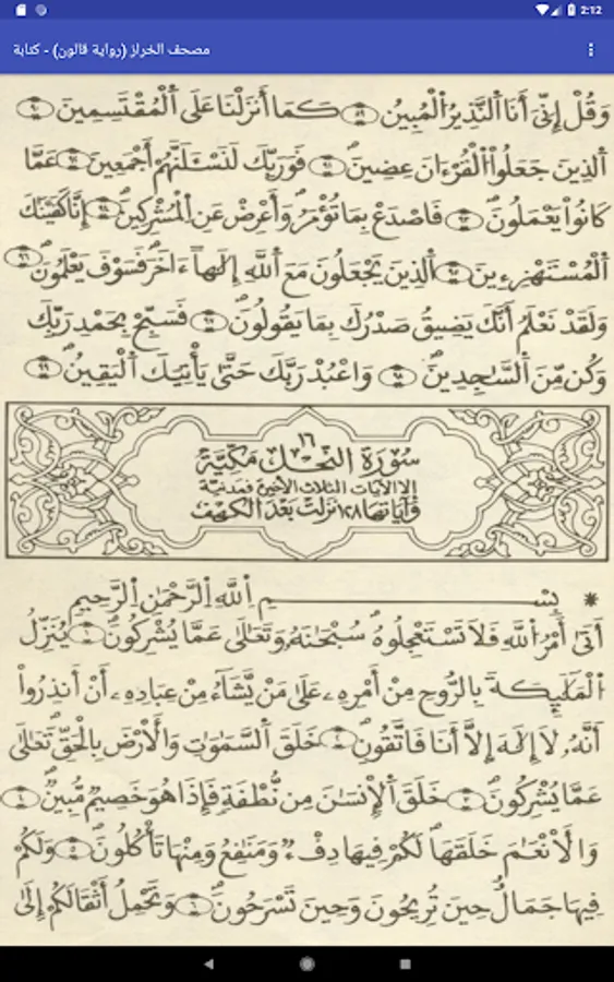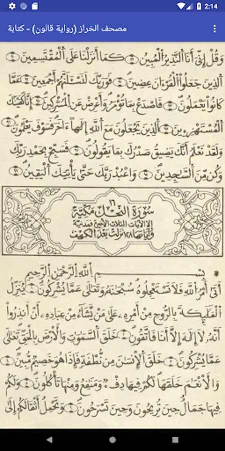 Application to browse the Holy Quran (writing) by telling KALON Nafie and control Kharaz, the Koran print Education Secretariat - Libya. The program has a page with writing only. The application works without Internet