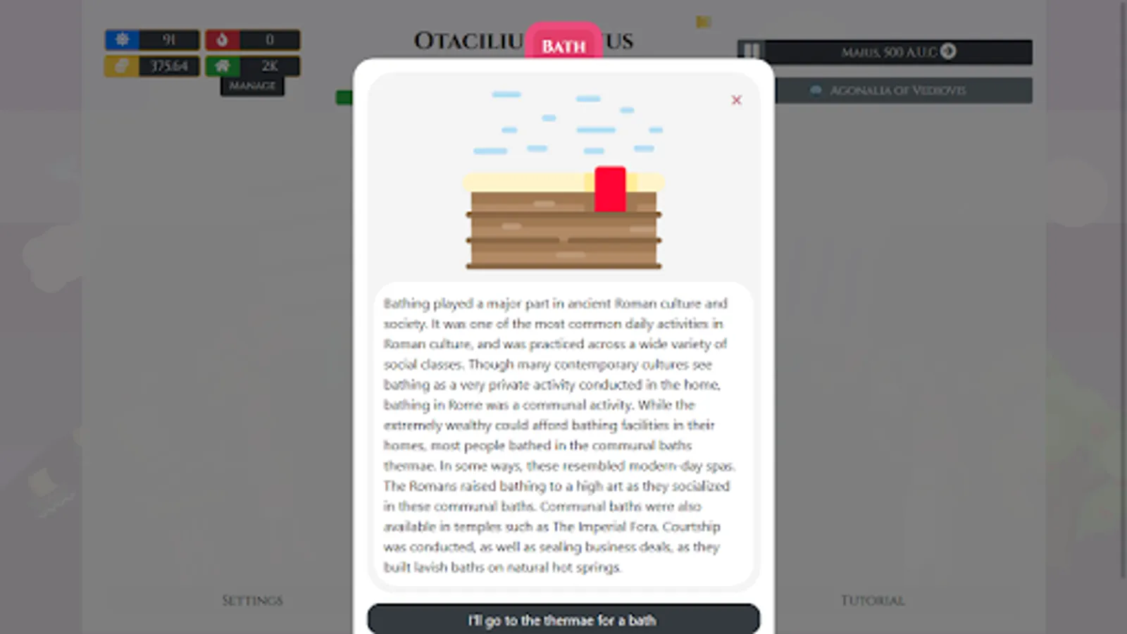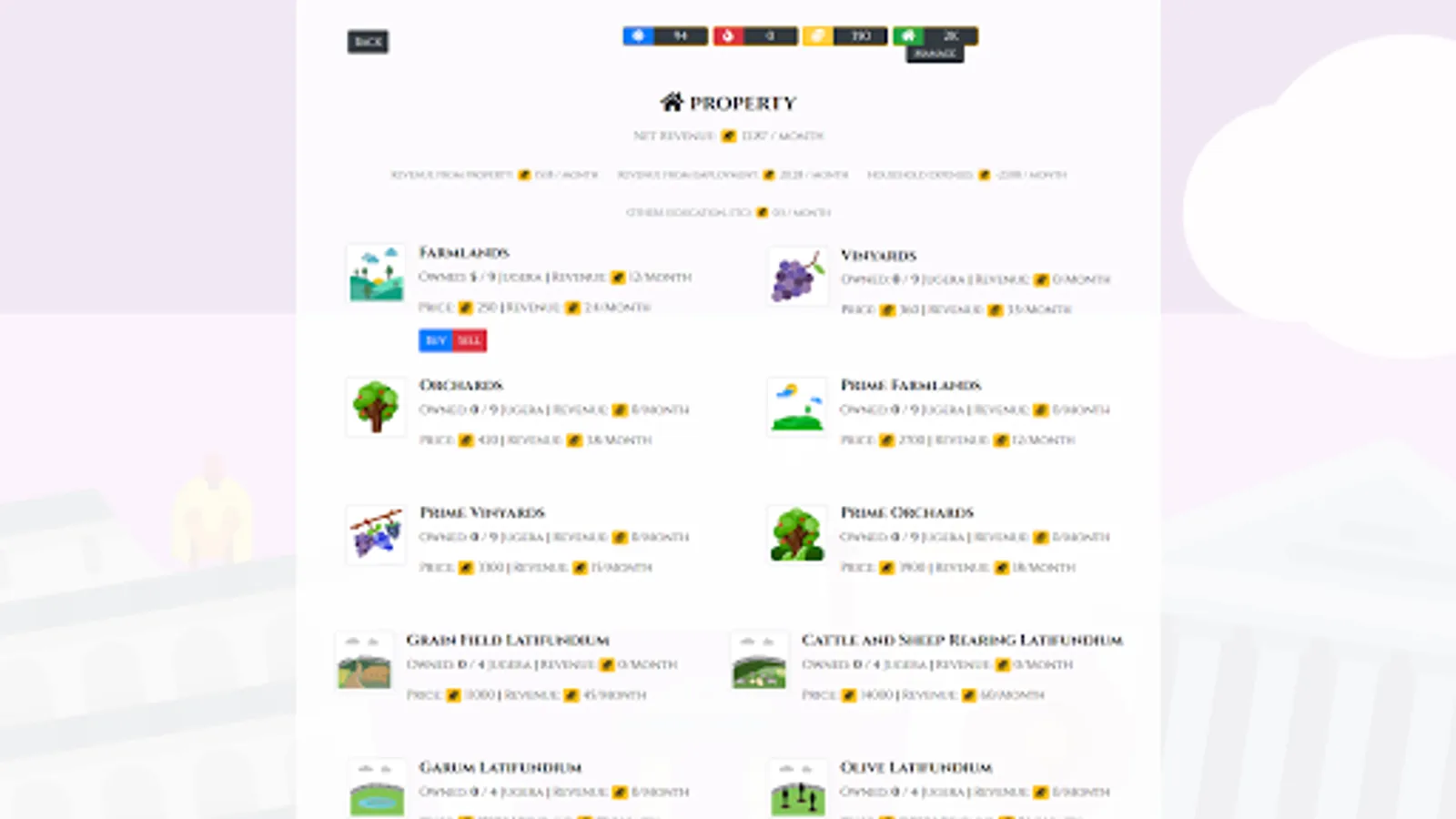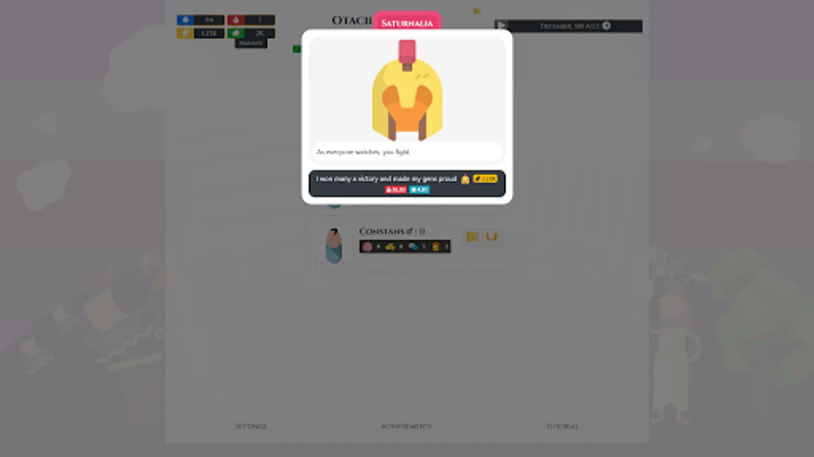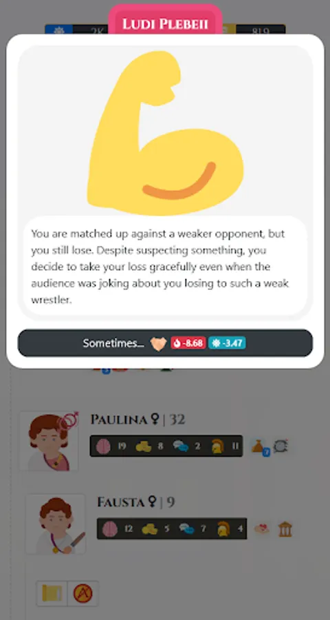 WARNING: The game just like fate will beat you down from time to time and you might find all that you worked for being taken away from you in an instant, but the way things are set up you'll almost certainly end up growing wealthy and reach the Senatorial class at some point despite various setbacks. There is no game-over and life goes on no matter what