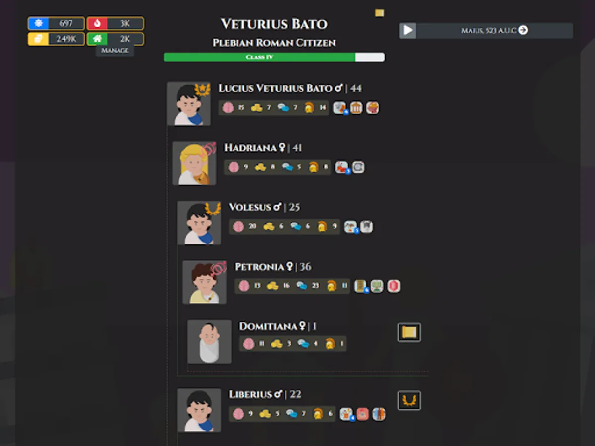 Citizen of Rome - Dynasty Ascendant is a multi-generational family/Dynasty life sim set in the Ancient Roman Republic.