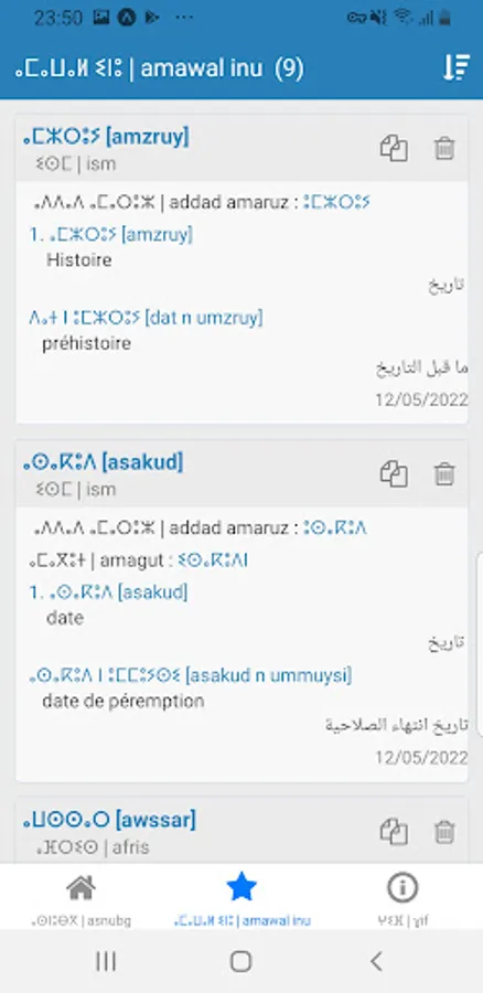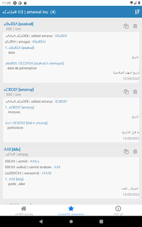 - Creation of favorite vocabulary available offline: terms marked as favorites are added to your vocabulary (Amawal inu).