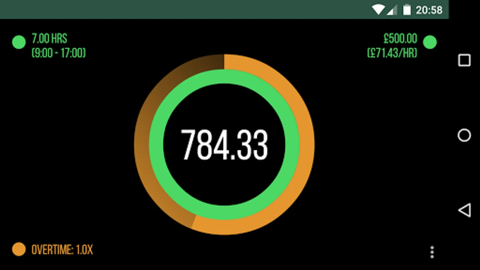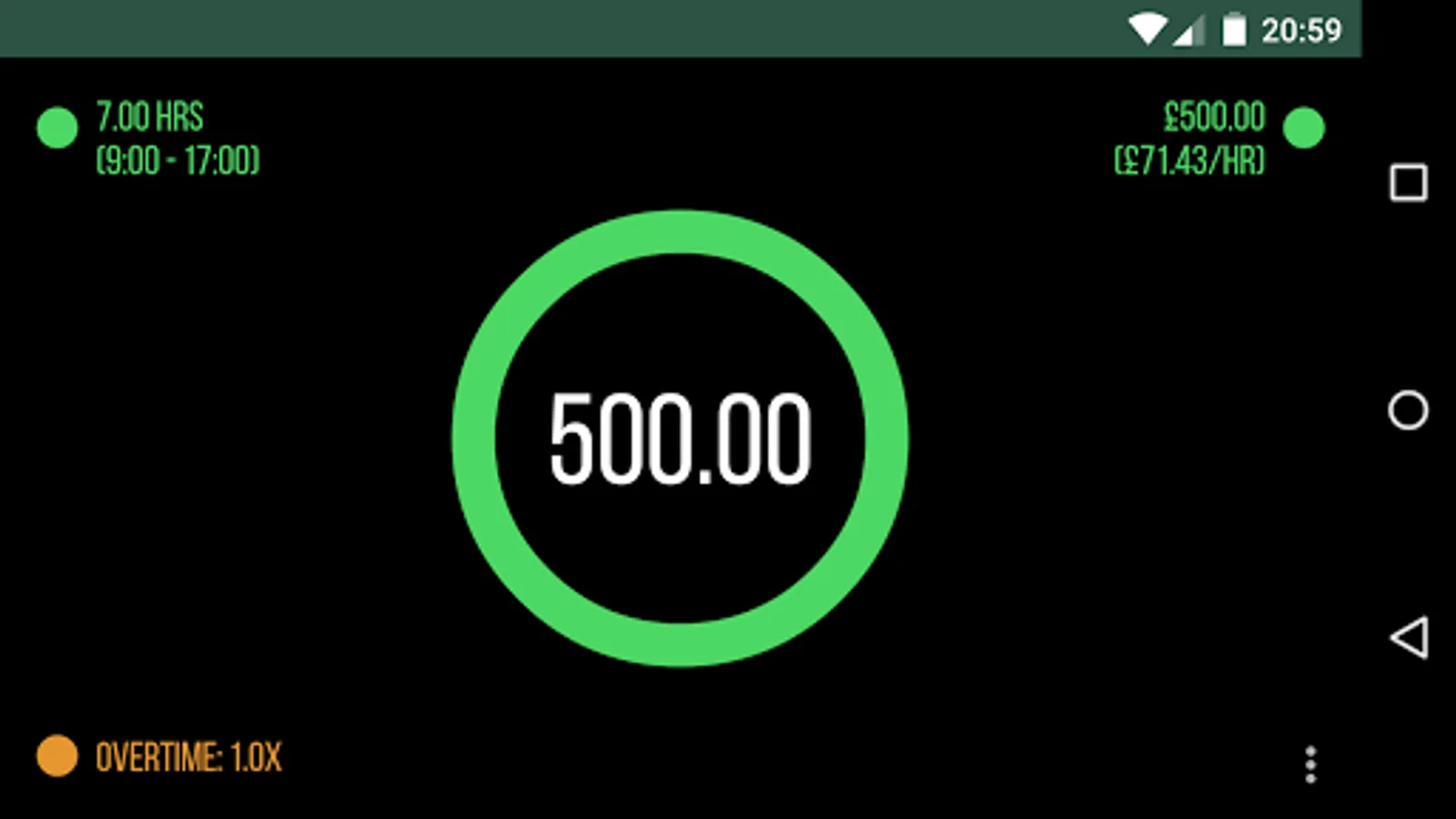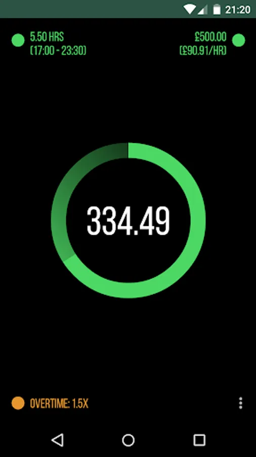 DayRate lets you see how much you're earning at any time, with just a glance. See a notification during the time you're working for a quick glance to see the progress for the day.