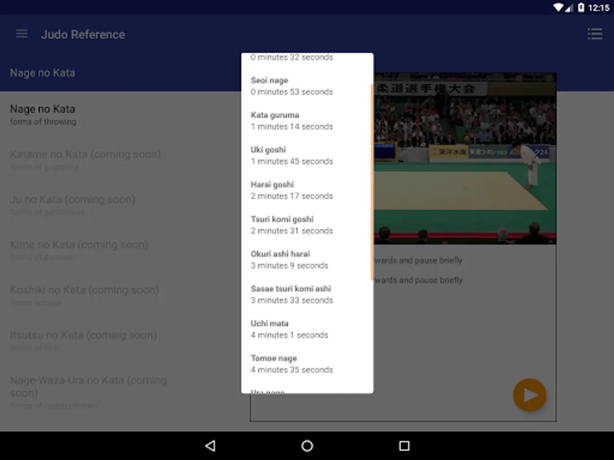 - Browse and search techniques - ne-waza/tachi-waza/shime-waza/kansetsu-waza