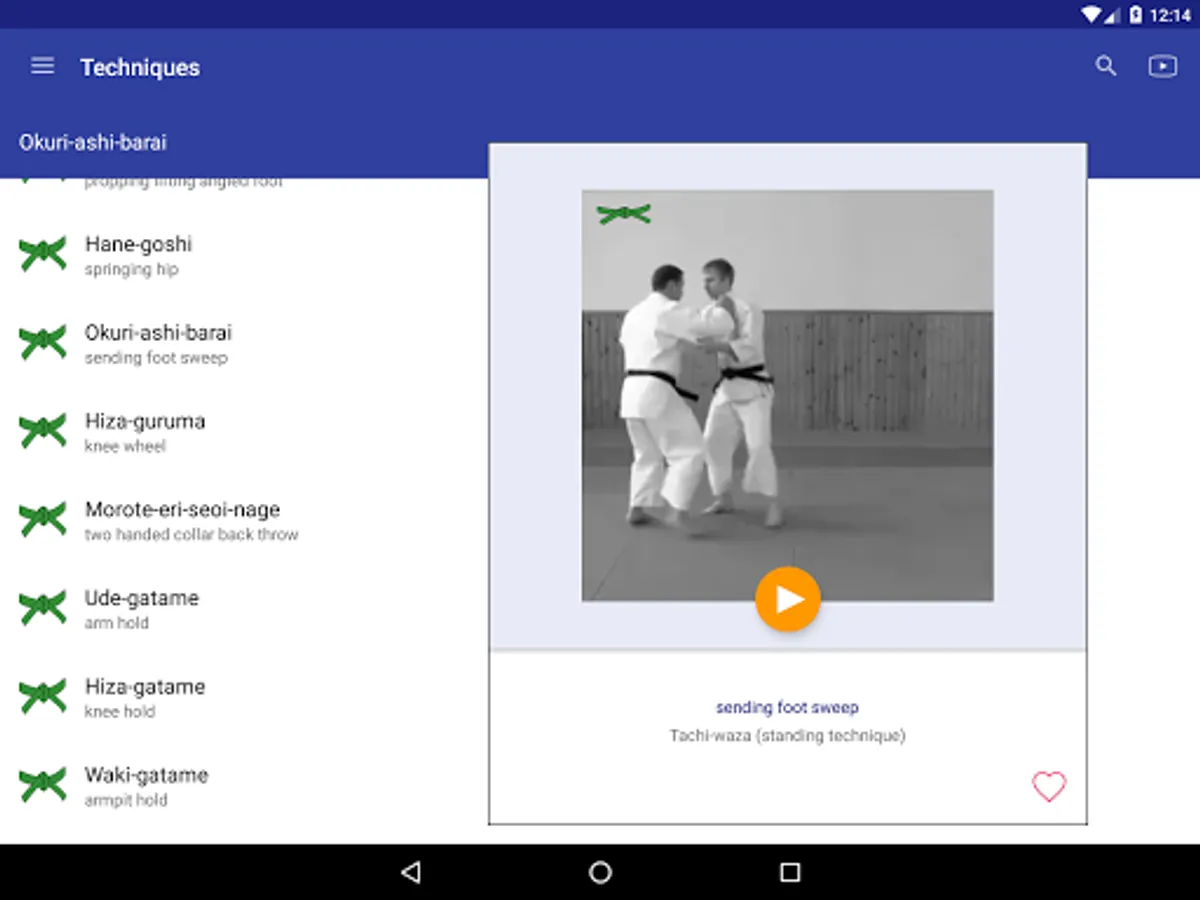- Browse and search techniques - ne-waza/tachi-waza/shime-waza/kansetsu-waza