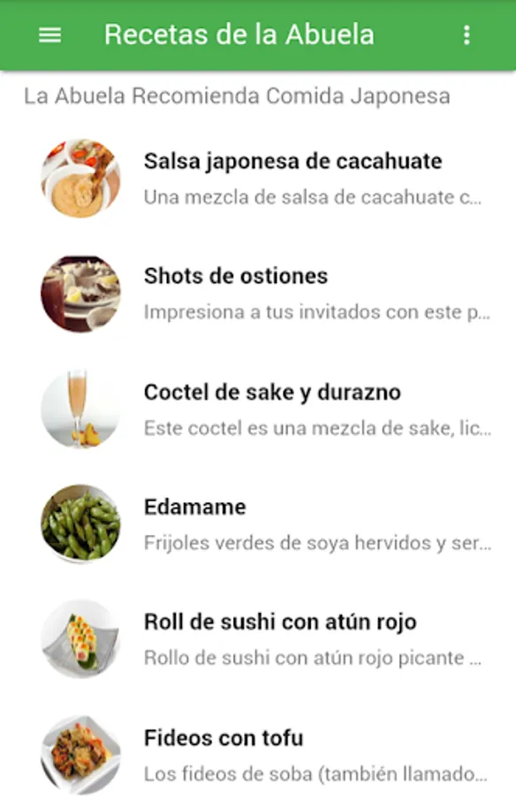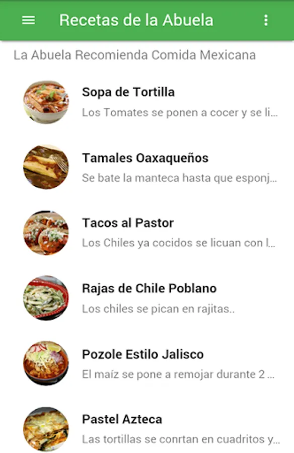 Recipes grandma App is a complete world cuisine. There you can find the best pastry to prepare at home, dietary pastry, food for coeliacs, vegans, diabetics and the best dishes of the strongest countries in terms of food are concerned. All it detailed by country so you can go slowly putting to test your kitchen. We have over 600 recipes in addition to guide you in the top left of the application drop-down menu button. You enjoy it and that you have left all delicious!
