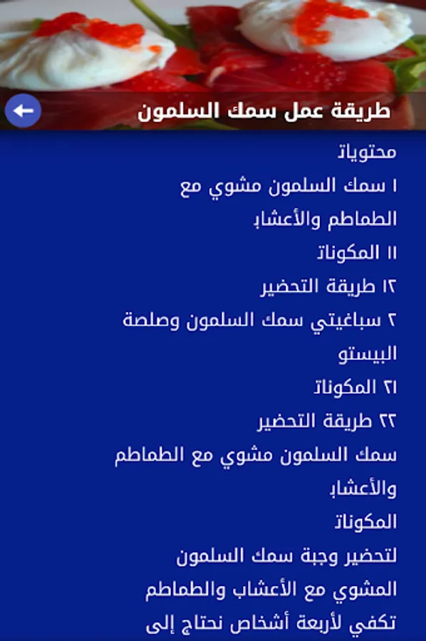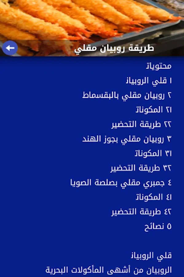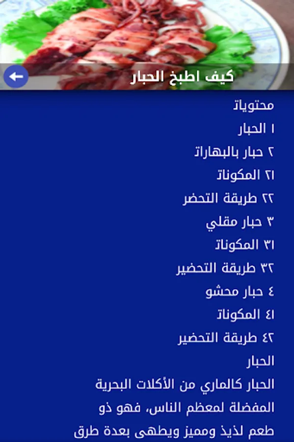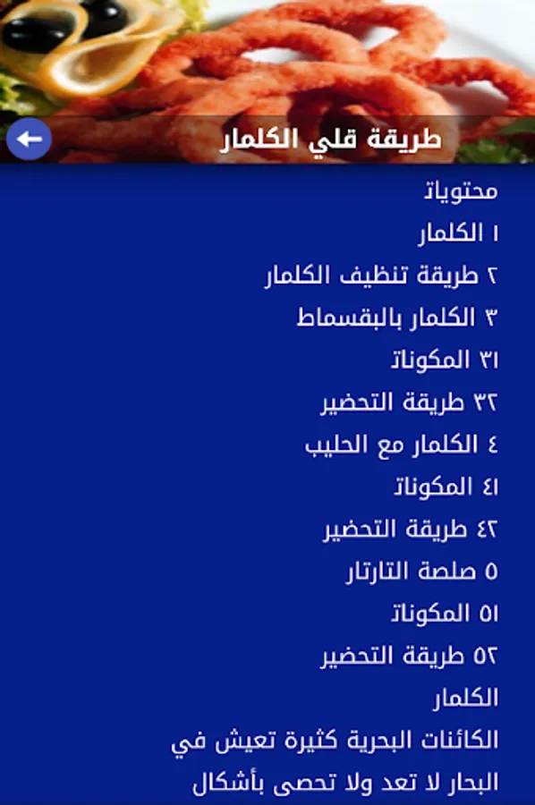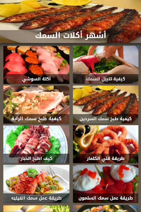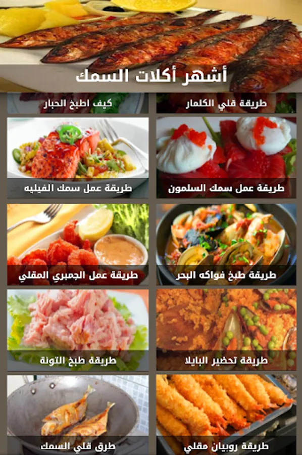 The application also includes recipes and seafood, how to make shrimps with sauce, with peeling shrimps prepared for fish, information about ornamental fish, then about salmon fish with the method of fish filling, in addition to how to cook crabs, prepare fish fillets, cook tuna fish, then make salmon by frying frozen shrimp