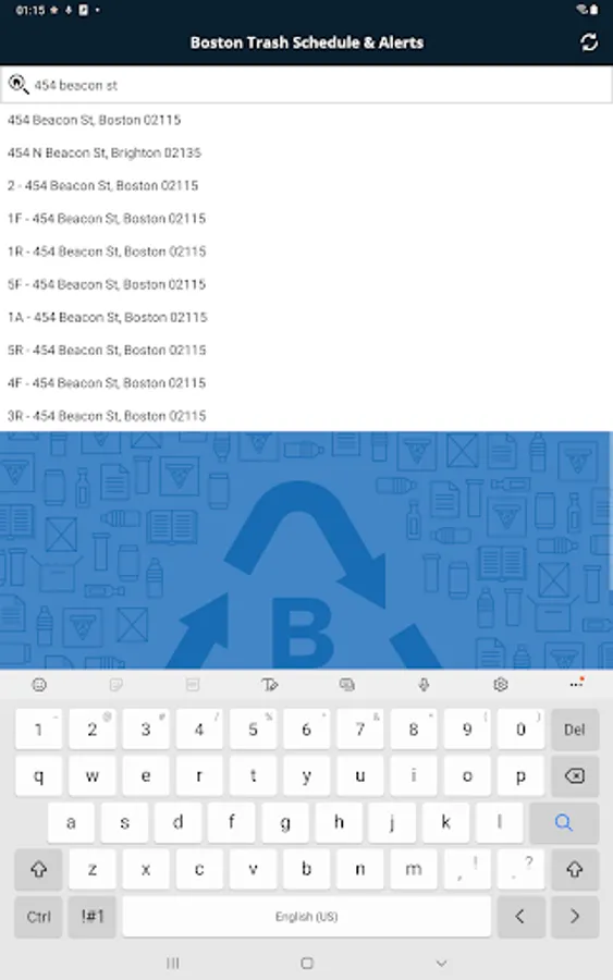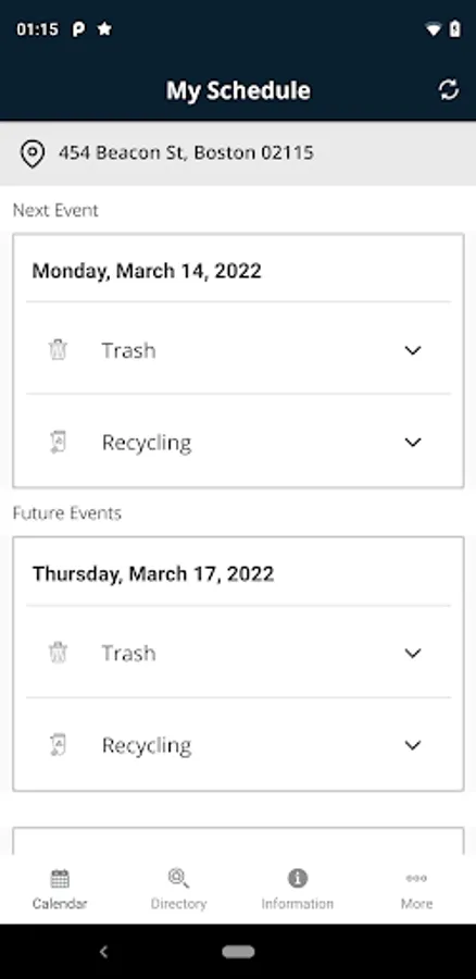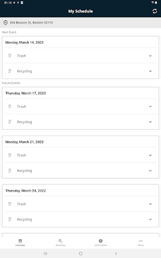 Garbage and recycling schedules and reminders for City of Boston. View your garbage and recycling schedule and receive collection notifications all from within this app.