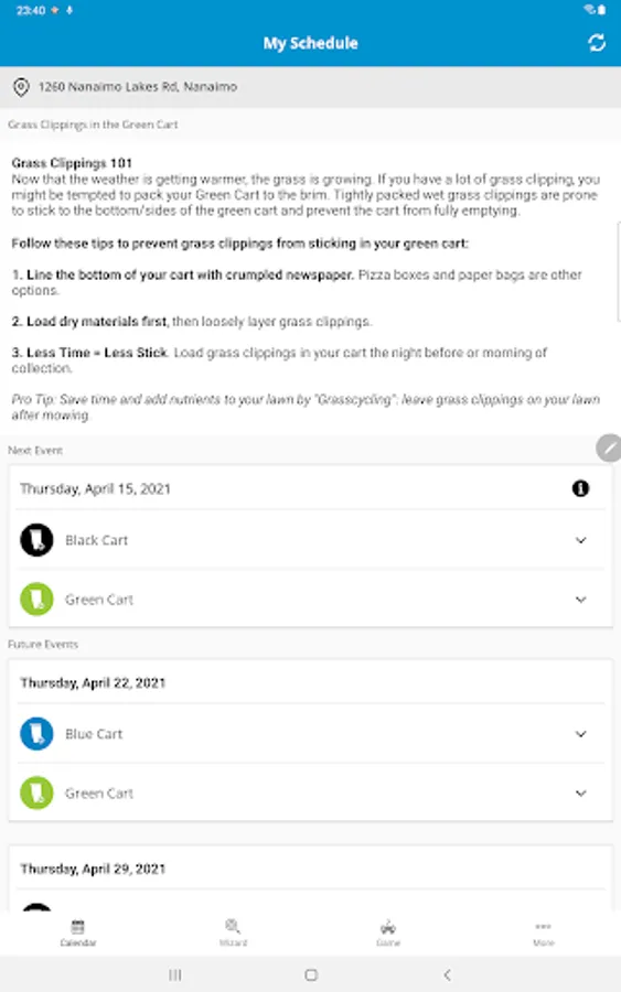 Garbage and recycling schedules and reminders for City of Nanaimo. View your garbage and recycling schedule and receive collection notifications all from within this app.