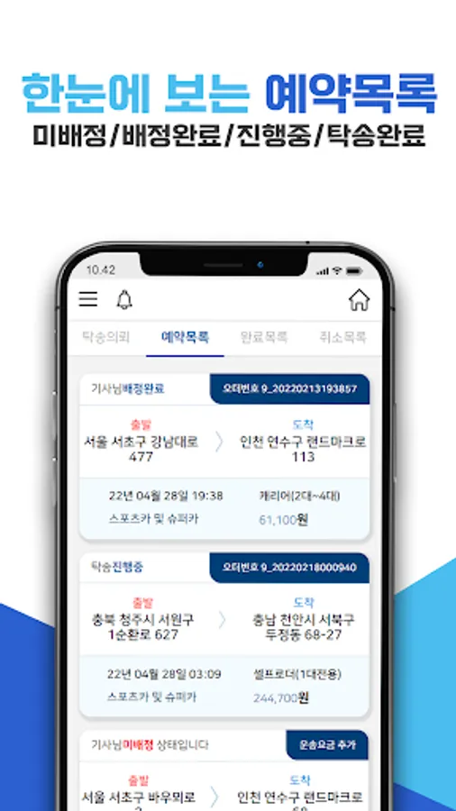 If necessary, you can make a real-time call with the consignment driver (company) through the safe number, so you can prepare for an emergency. The push-up function notifies the departure, arrival, and completion of takeover of the consignment vehicle.
