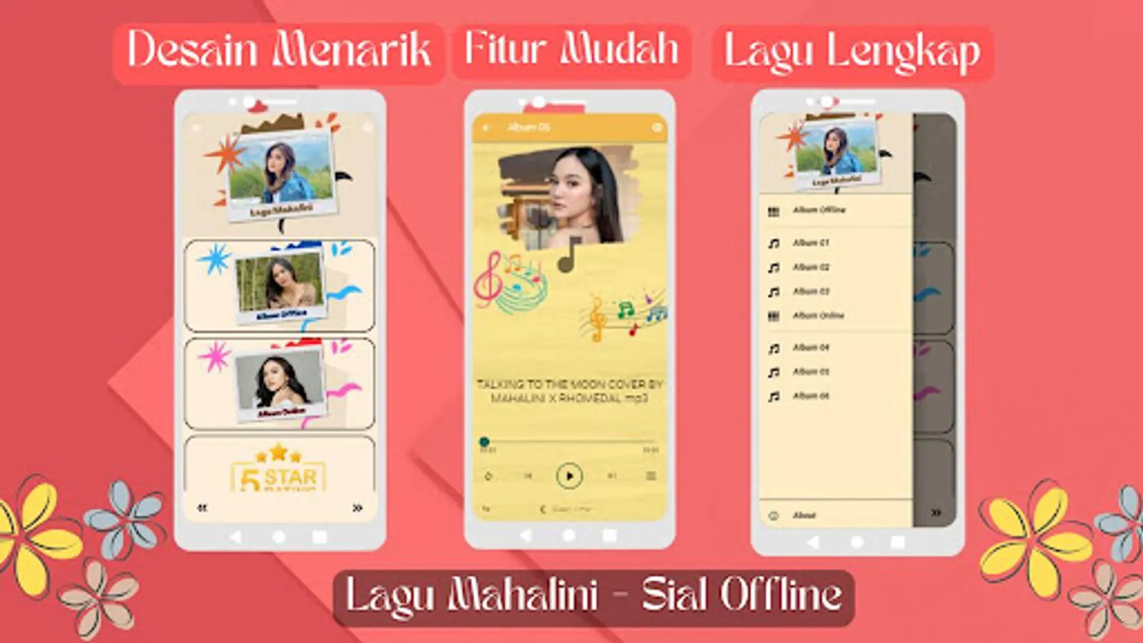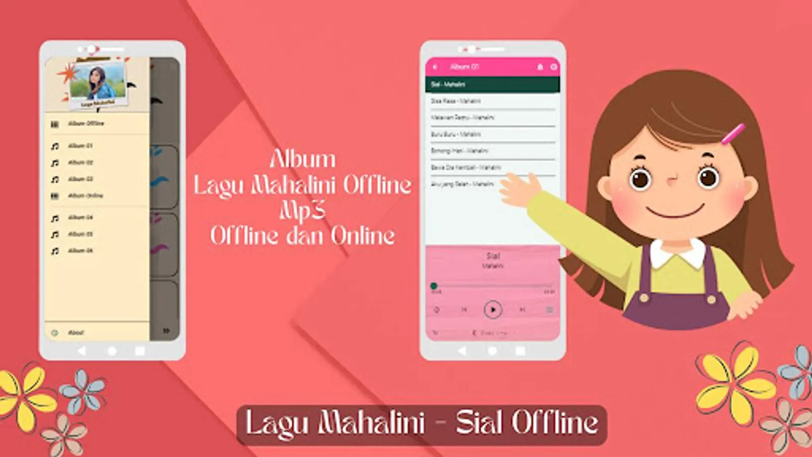 Note: This app provides Mahalini songs in offline and online format. An internet connection is required to access online albums. The copyright of these songs is wholly owned by Mahalini and related publishers. This application is an official and legal application that distributes the songs in partnership with Mahalini.