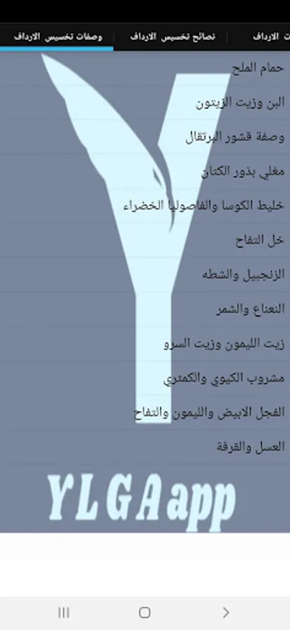 Cabbage leaf, hot water, alfalfa, grapefruit, ginger, pineapple, cinnamon, coffee, salt bath, apple cider vinegar, orange peels recipe, zucchini, green beans, papaya, boiled flax seeds, nigella, all these recipes are detailed and simple explanation inside the application.