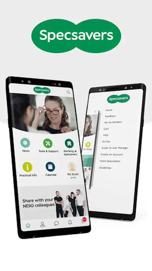 This is the communication, training and operation app for Specsavers and Louis Nielsen partners, store teams and support office employees in Northern Europe.