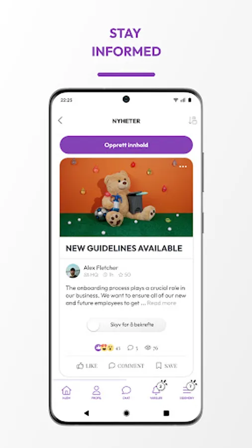 In the app, you can create posts and read posts from the groups you are a member of. You will find important information from the immediate manager, news, information about campaigns, weekly news and other useful information.