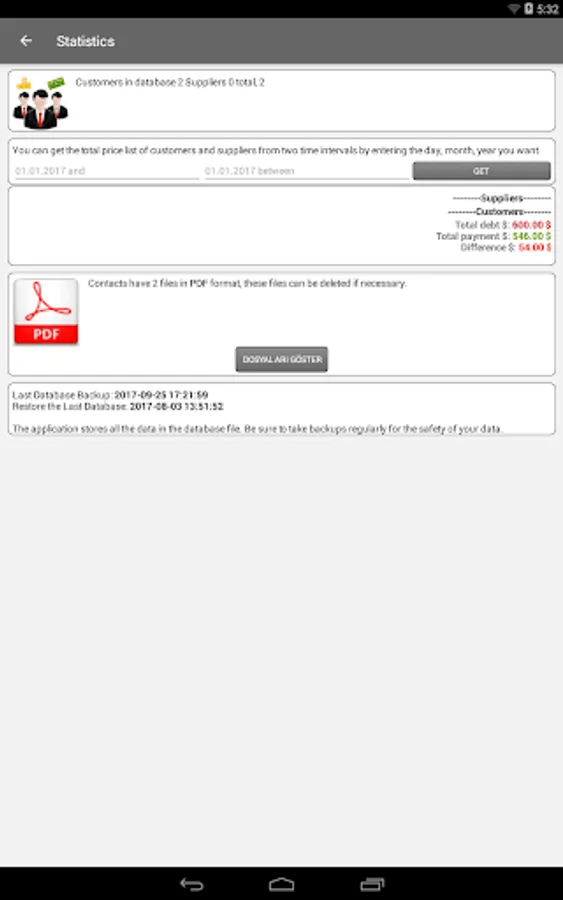 As you can understand from the name, you can follow the customer and the suppliers with this application.