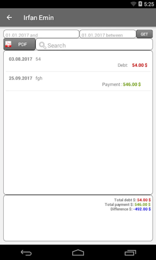 You can see the total payments and debts that can list payments and debts at the desired date range.