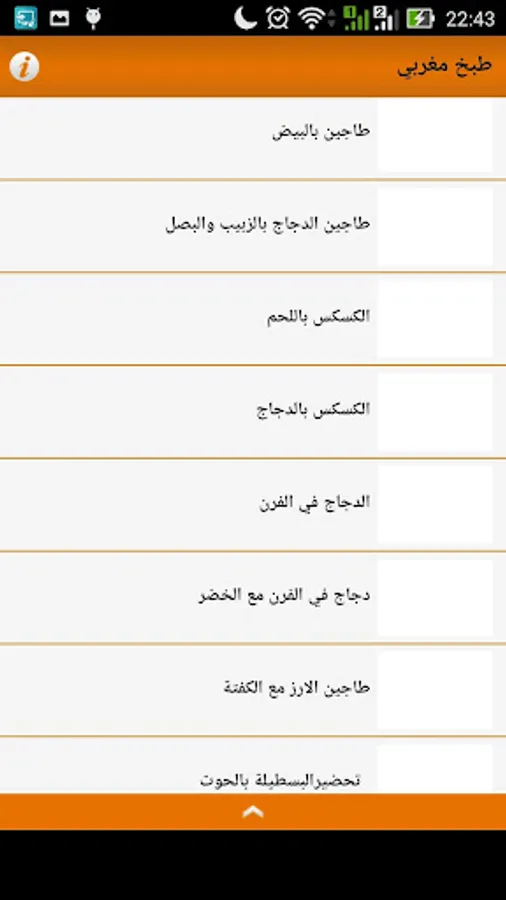 This simple application on a variety of recipes for some of the diverse types of Moroccan cuisine contains both both on the level of preparation or presentation of the Moroccan tagine ... a species is different from my father prepared from one area to another ... and then there are recipes for traditional couscous ... and Khtman Balbstilh