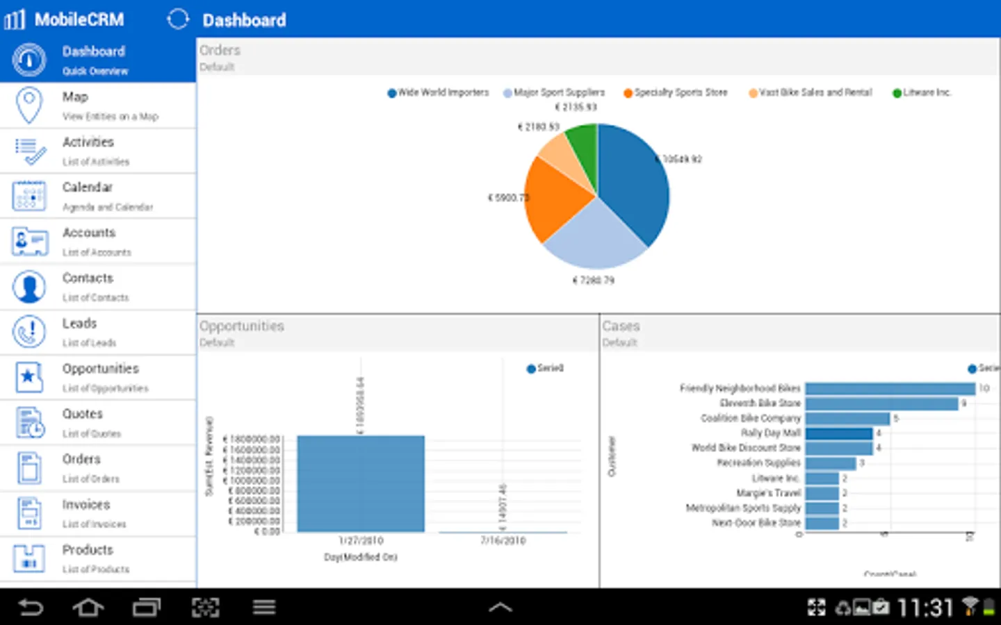 Resco Mobile CRM application allows you to access your CRM data on the go. Connect directly to Microsoft Dynamics CRM, Oracle CX, and Salesforce offline/online, or use it to access other CRM and ERP systems.