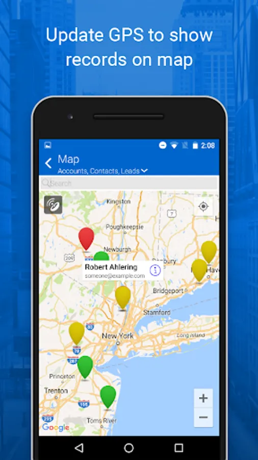 • Interactive maps that display accounts, contacts, activities and other types of records