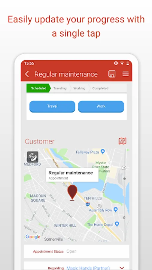 Simple yet powerful - this mobile app helps you organize your appointments, plan routes to customers, and manage your weekly timesheet.