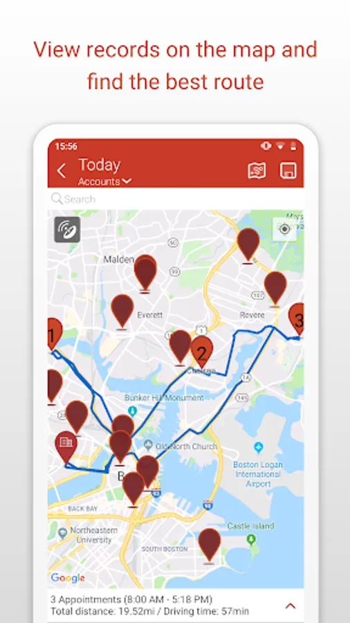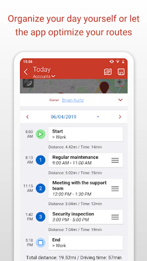• Organize your day yourself or let the app to create optimized route plans with navigation to the destination
